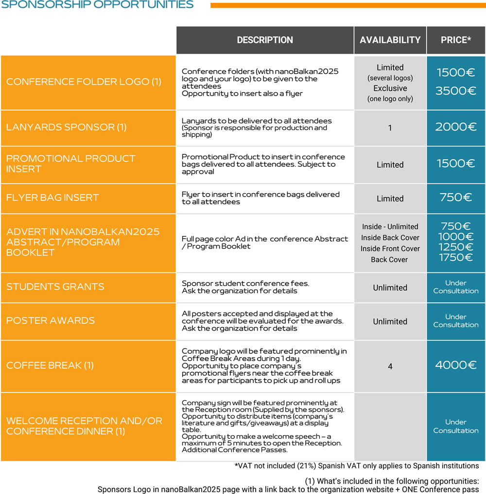 Sponsorship opportunities are designed to meet your business development goals and objectives. nanoBalkan2025 offers a tremendous opportunity to market to one of the largest 2025 European gatherings of nanoBalkan2025.