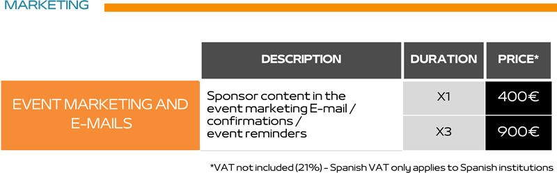 Opportunity to include the event sponsors' content in the marketing email, confirmations, and event reminders. Give the sponsors the opportunity to create content that relates to the topic of the event that can be distributed in one of these email communications.